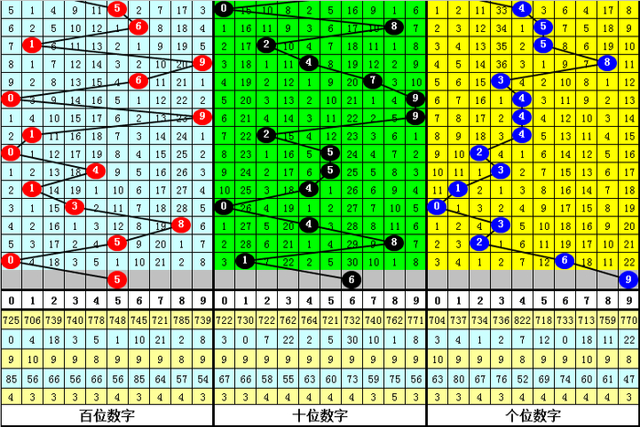 012路分析:历史上排列三第303期同期奖号中,012路奖号总个数比为25:18:17,012路奖号轮空期数比为6:8:8,今年第303期预计1路号码走冷轮空,看好012路比开出2:0:1。